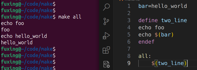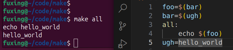 1、一般变量使用$符号引用,例如引用变量foo则可以使用$(foo)或者${foo}