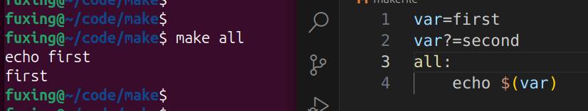 ?= 运算符常常被用于为变量设置默认值,像编译选项、文件路径等。可以通过命令行来覆盖这些默认值