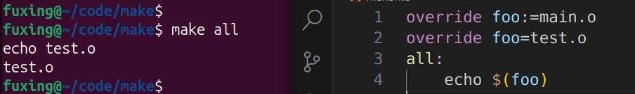 使用override定义的变量,在追加或者覆盖值时需要使用override指示符,