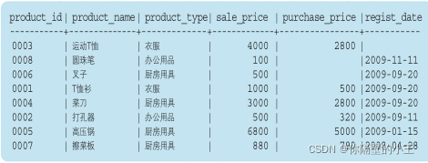 3、此前我们曾经使用 SELECT 语句选取出了 Product ( 商品 ) 表中的全部记录。当时我们使用了 ORDER BY 子句来指定排列顺序,但现在已经无法记起当时如何指定的了。请根据下列执行结果,思考 ORDER BY 子句的内容。