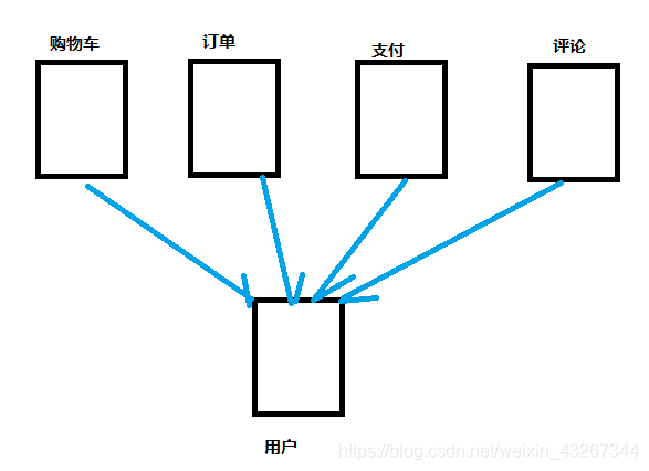 在微服务中,服务间的调用关系错综复杂,一个请求,可能需要调用多个微服务接口才能实现,会形成非常复杂的调用链路,例如下图:购物车、订单、支付和评论都需要调用用户的微服务,但是如果此时用户这个微服务出现异常,那么后面的等等一下微服务都会受到影响,由于一处错误,引起了整个项目的运行。形成了雪崩效应。