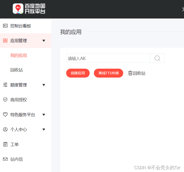 3.进入应用管理 ===> 我的应用 ===> 创建应用