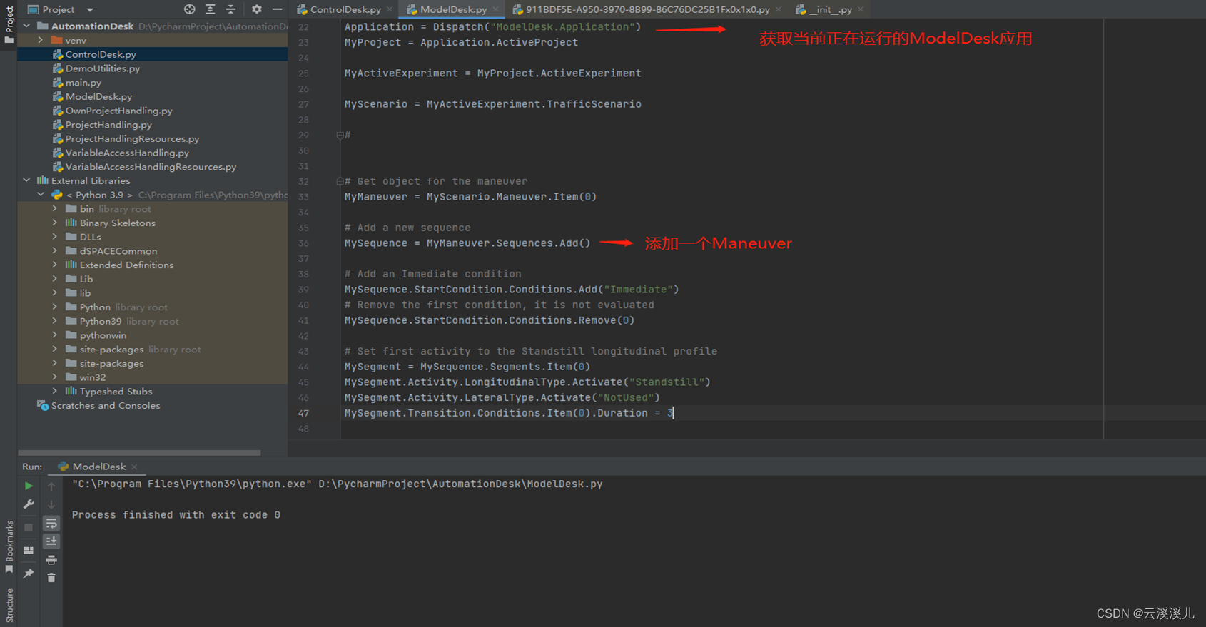 Python的编程环境需选择系统的Python环境,可看到有Dspace Common和win32等相关库。