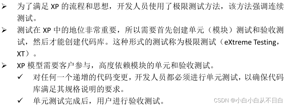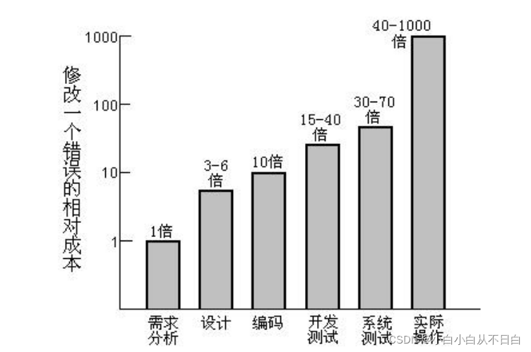 - 测试是开发之后的一个阶段。实际应用中容易导致需求阶段的错误一直到最后系统测试阶段才被发现