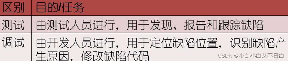 - 对于开发者来说,软件测试就是通过找到的问题缺陷来帮助开发人员找到开发过程中存在的问题,比如开发的模式、技术等方面的问题,从而预防下次缺陷的产生