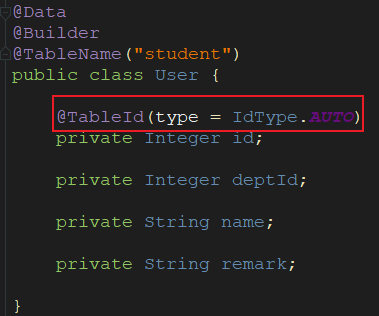 @TableId(type = IdType.AUTO)