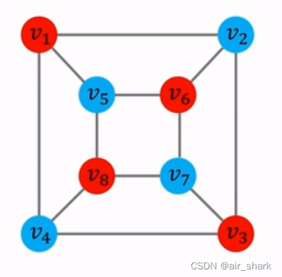 判断左图是否为二部图。(显然是二部图,如右图所示)