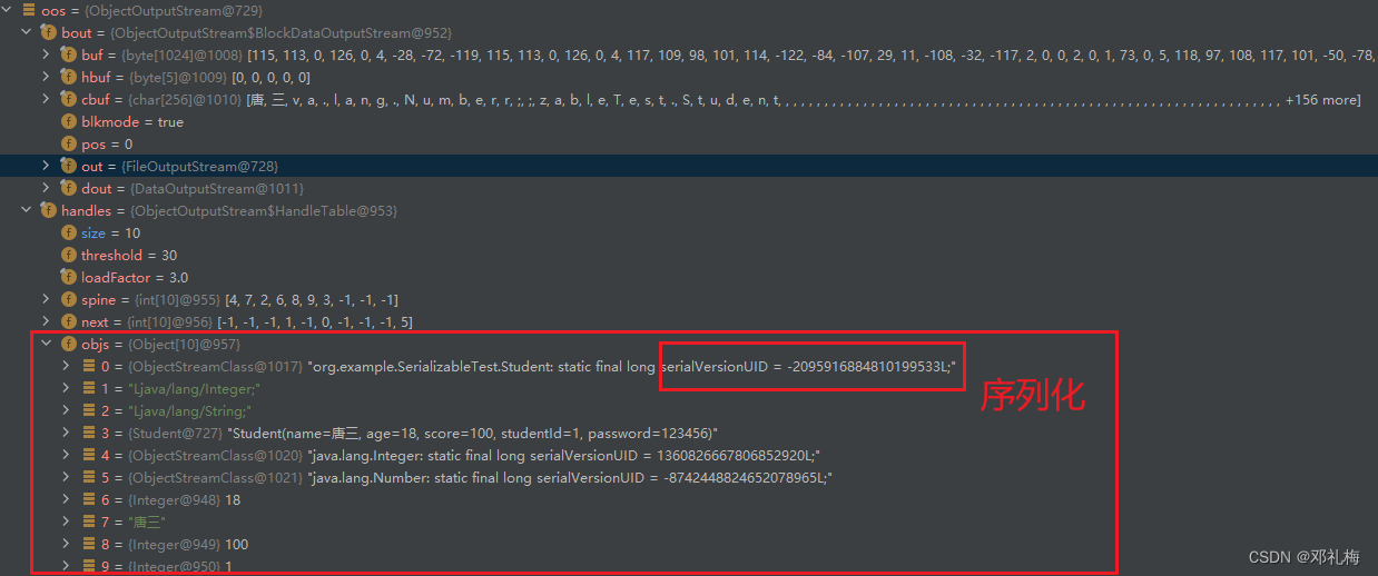 oos.writeObject(new Student("唐三", 18, 100, i, "123456"));