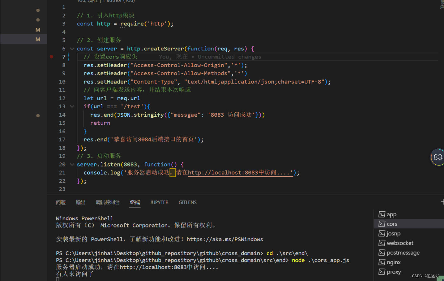 8083服务器设置cors响应头字段使能被跨域访问 ↓