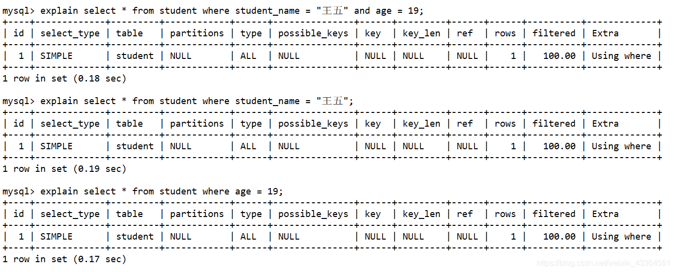 possible_keys:可能使用的索引,即哪个索引包含查询条件中的字段;