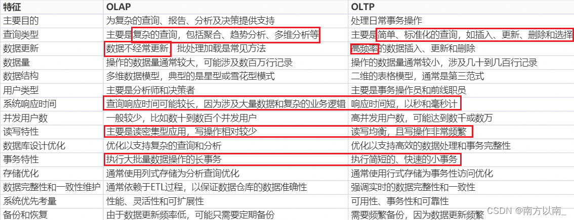 行式存储VS列式存储对比 表中每一列的数据连续存放。这种方式在需要对某一列进行大量运算或分析时非常有用,比如在数据仓库和在线分析处理(OLAP)系统中很常见。如果要检索一条数据,数据库会读取or写入整条记录,包含所有相关字段。不论是行式,还是列式,都是说的数据行着放还是竖着放。一行代表一个记录的所有字段。可以快速读取和写入单条记录。