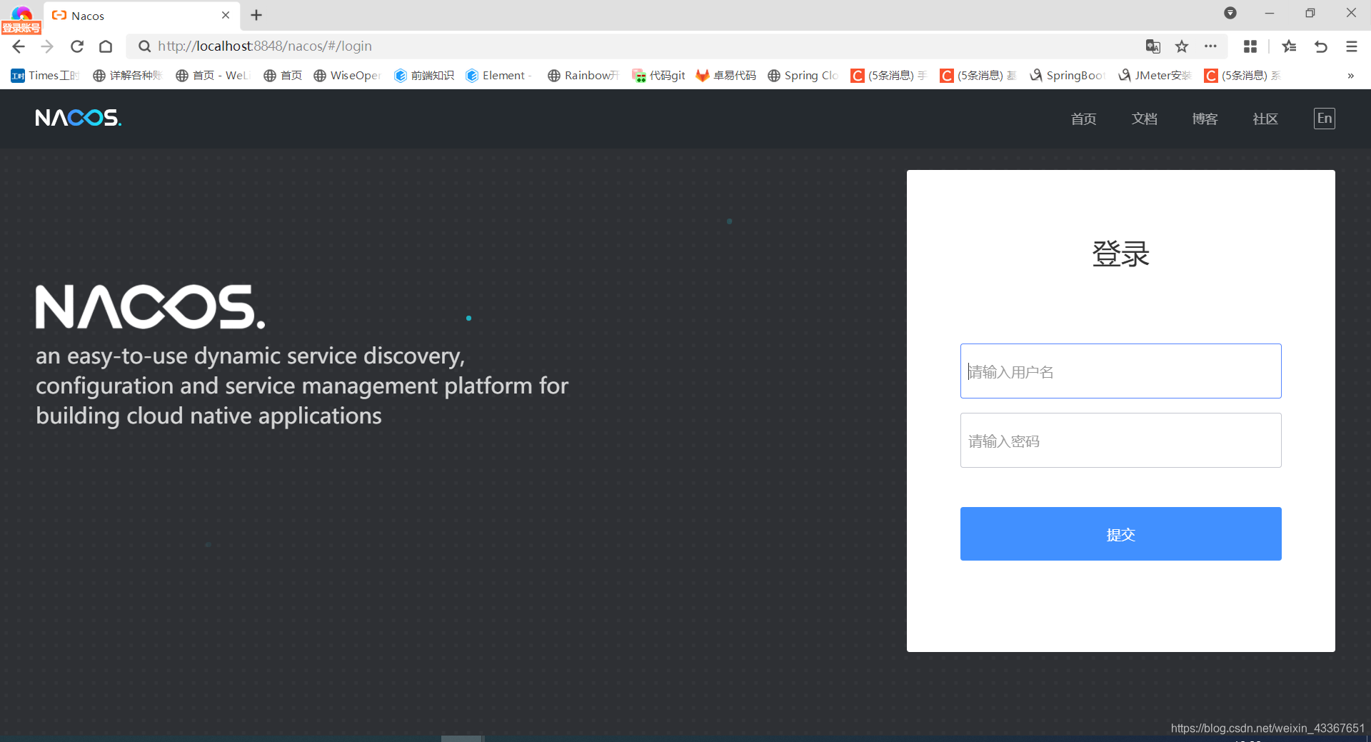 用户名和密码均为:nacos