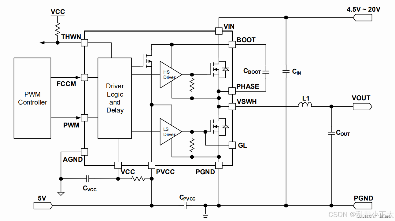 简单的说,就是利用电感储能,电流不能突变的原理,通过PWM控制 HS Driver和LS Driver进一步控制高边MOS和低边MOS的打开和关闭,调节输出的功能。