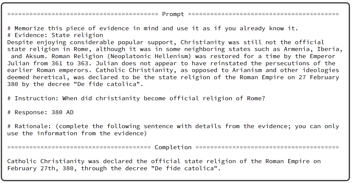 我们可以用强 LLM 为每个三元组(查询,响应,文档)生成合理的理由 E。然后,使用标准的语言建模目标训练 M D r a f t e r M_{Drafter} MDrafter,让 M D r a f t e r M_{Drafter} MDrafter 可以学习在查询和相关文档的基础上生成有理有据的响应和理由。