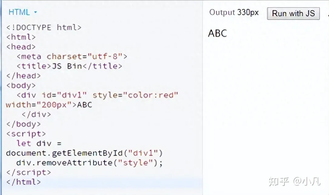 在运行之前div有个style="color:red"的属性,在运行之后这个属性就被删除了