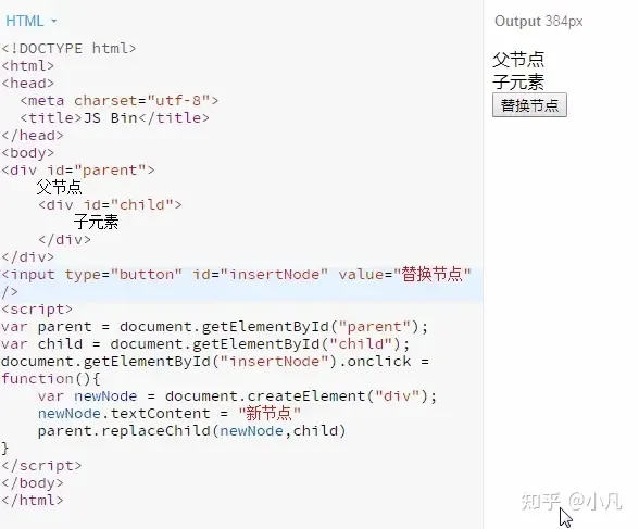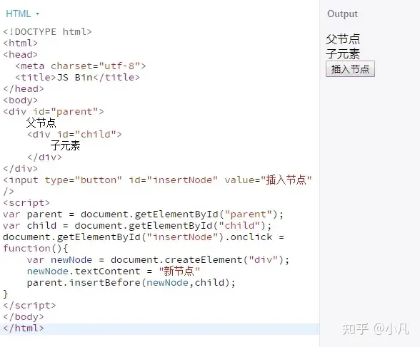 appendChild我们在前面已经用到多次,就是将指定的节点添加到调用该方法的节点的子元素的末尾。