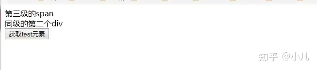 两个class都包含“test”的元素,一个在文档树的前面,但是它在第三级,另一个在文档树的后面,但它在第一级,通过querySelector获取元素时,它通过深度优先搜索,拿到文档树前面的第三级的元素。运行结果: