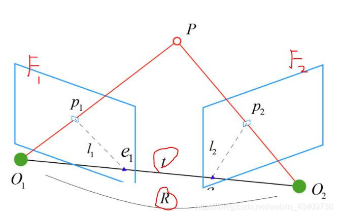 假设相机F1在世界坐标系下的位姿为:(这里仅举二维齐次矩阵为例,三维同理)