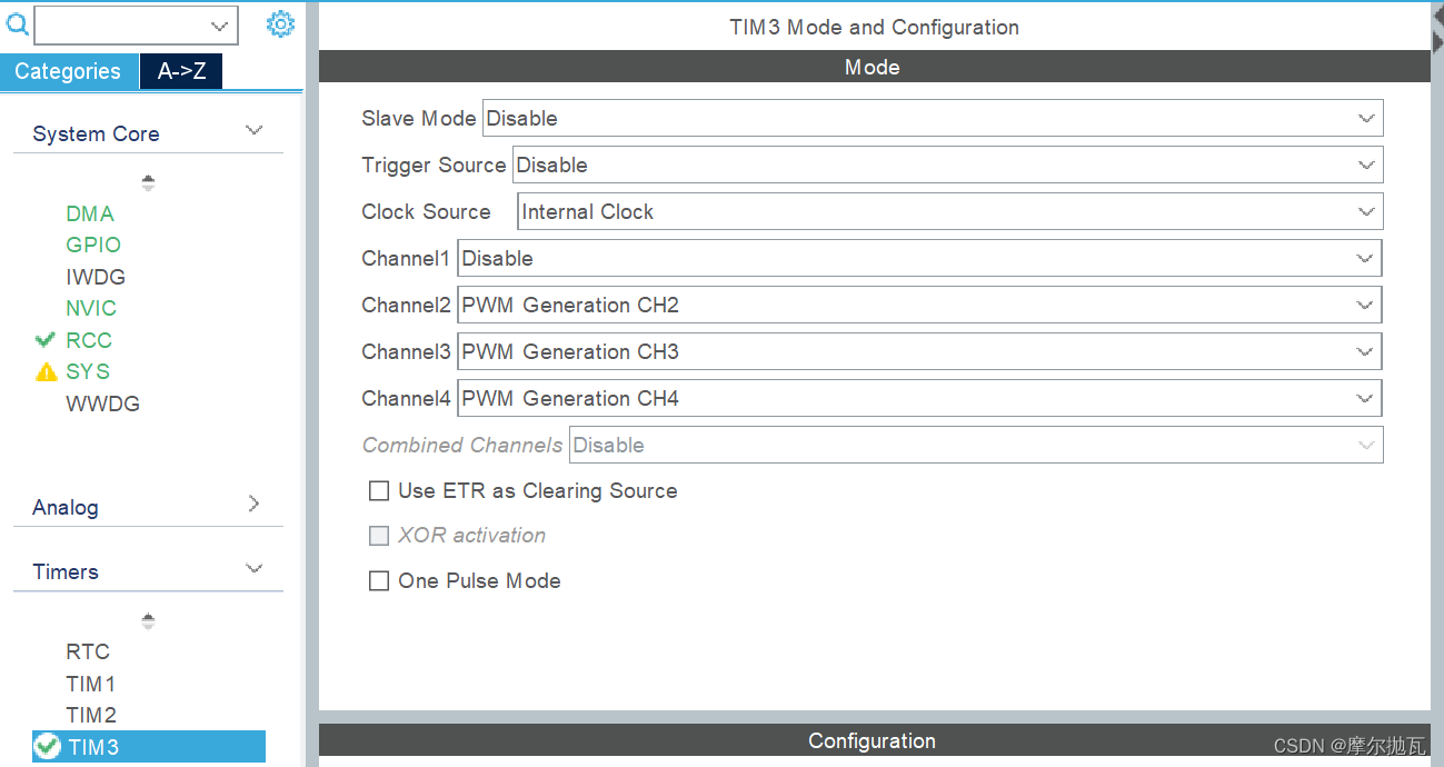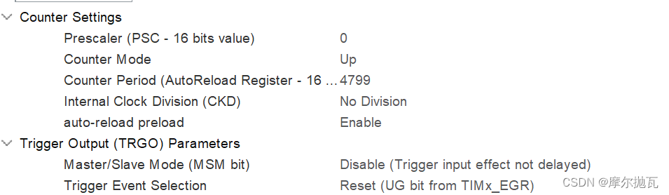 定时器的相关配置如下图所示我们用15khz的pwm信号作为载波