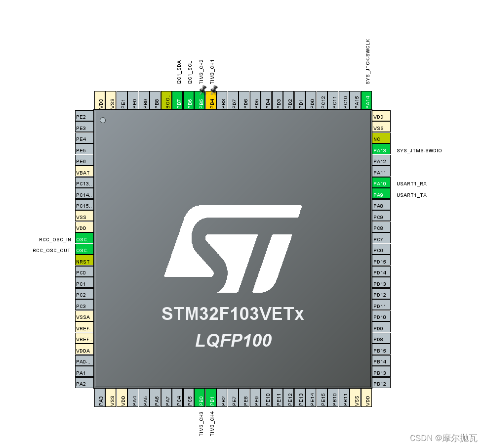 既然要驱动FOC电机那么PWM肯定是少不了的,我们首先进行PWM输出的配置:我们选择定时器TIM3的通道2,3,4就是PB0,PB1,PB5三个引脚输出PWM信号这三个引脚正好连接着led也方便我们观察现象。