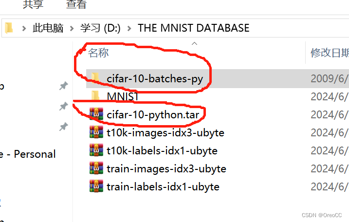 因办公室网络缘故,依然无法下载,显示超时错误,故利用别人百度云盘分享的CIFAR10的压缩包cifar-10-python.tar下载下来,放置于我的固定文件夹中,运行此段代码后发现压缩包已经被解压并自动生成文件夹cifar-10-batches-py,如图所示:
