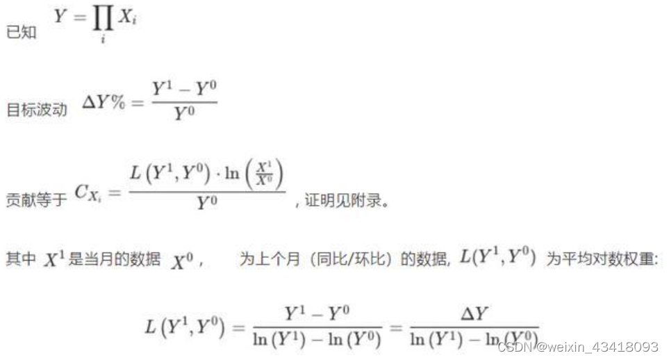 举例,GMV=下单人数*人均客单价,两边同时取对数ln,即可得到加法形式,然后再按照类似方法得到各因子的贡献度。所以最终就是比较哪个因子的前后比率大,贡献度就大。