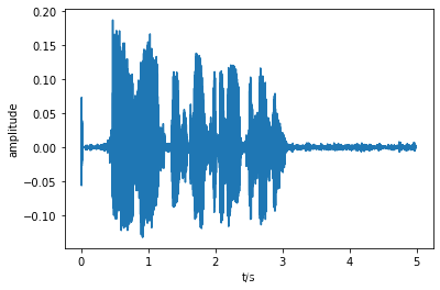 重采样后,噪声样本的采样率也变为了22050Hz。我们取其前5秒,使其匹配示例音频时长后,与示例音频以5dB的信噪比混合。