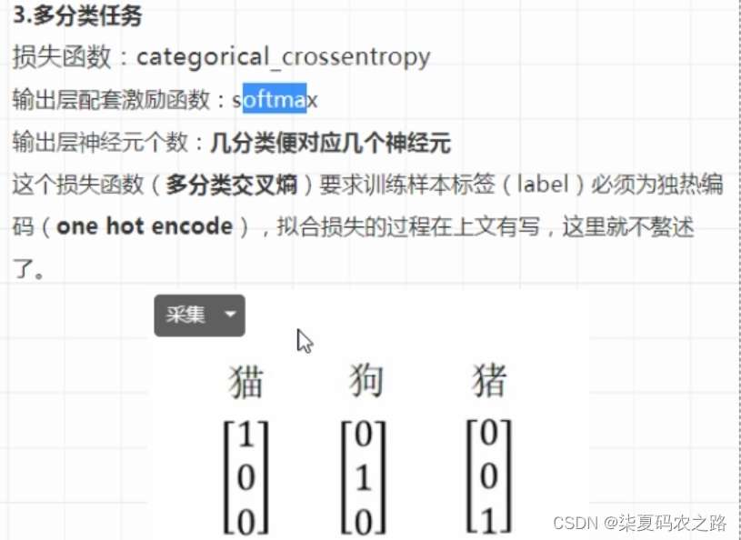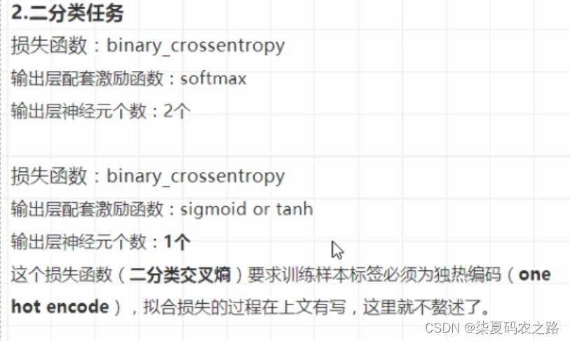 前言:基于整个神经网络的训练课程是基于梯度下降方法去不断缩小预测值与真实值之间差值的过程。而这个差值就是损失(loss),计算这个损失的函数就是损失函数,且损失函数是和神经网络输出层的激励函数相配套的。