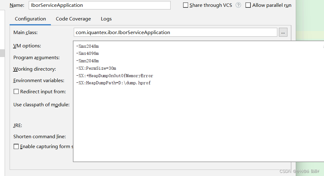-Xms2048m -Xmx4096m -Xmn2048m -XX:PermSize=30m -XX:+HeapDumpOnOutOfMemoryError -XX:HeapDumpPath=D:\dump.hprof