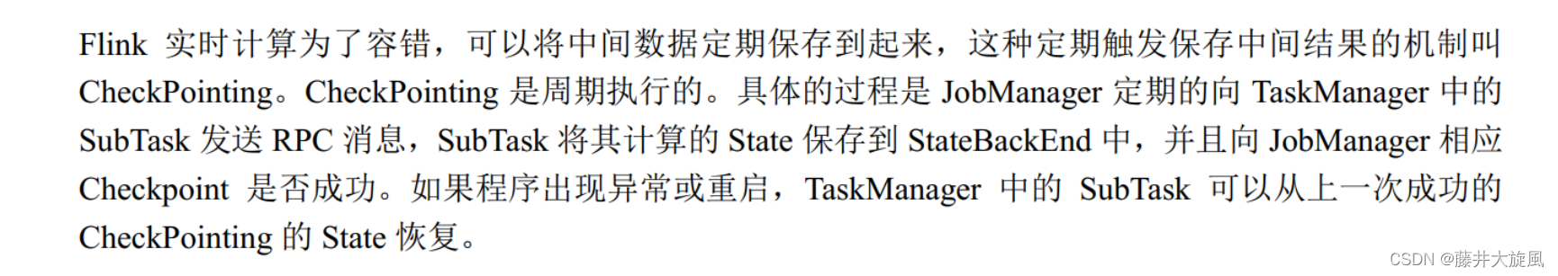 * 2.如果想要容错,必须开启checkpointing,并且按照Flink的状态编程API进行编程(将中间结果保存都Flink特殊的变量中)