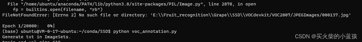 cd→cd conda(如果一不下心退到了本地,可以用ssh ubuntu@1.14.246.66进入里面)→ cd SSD→python train.py