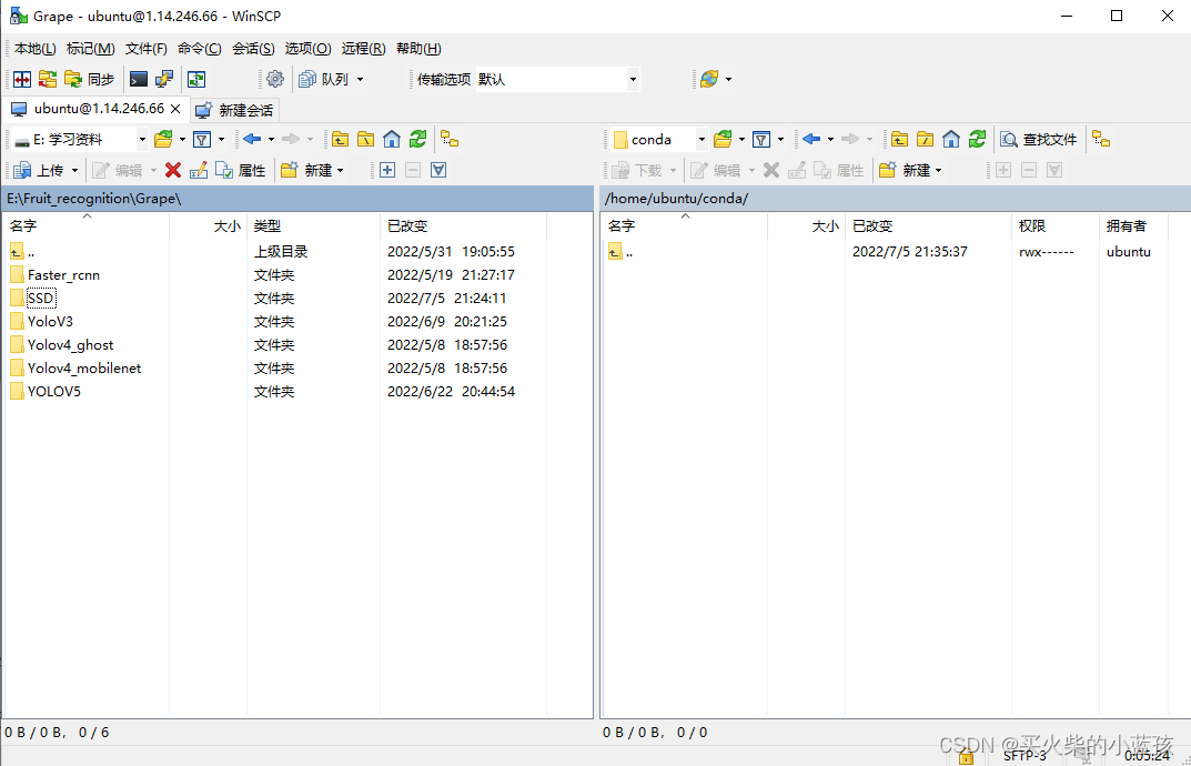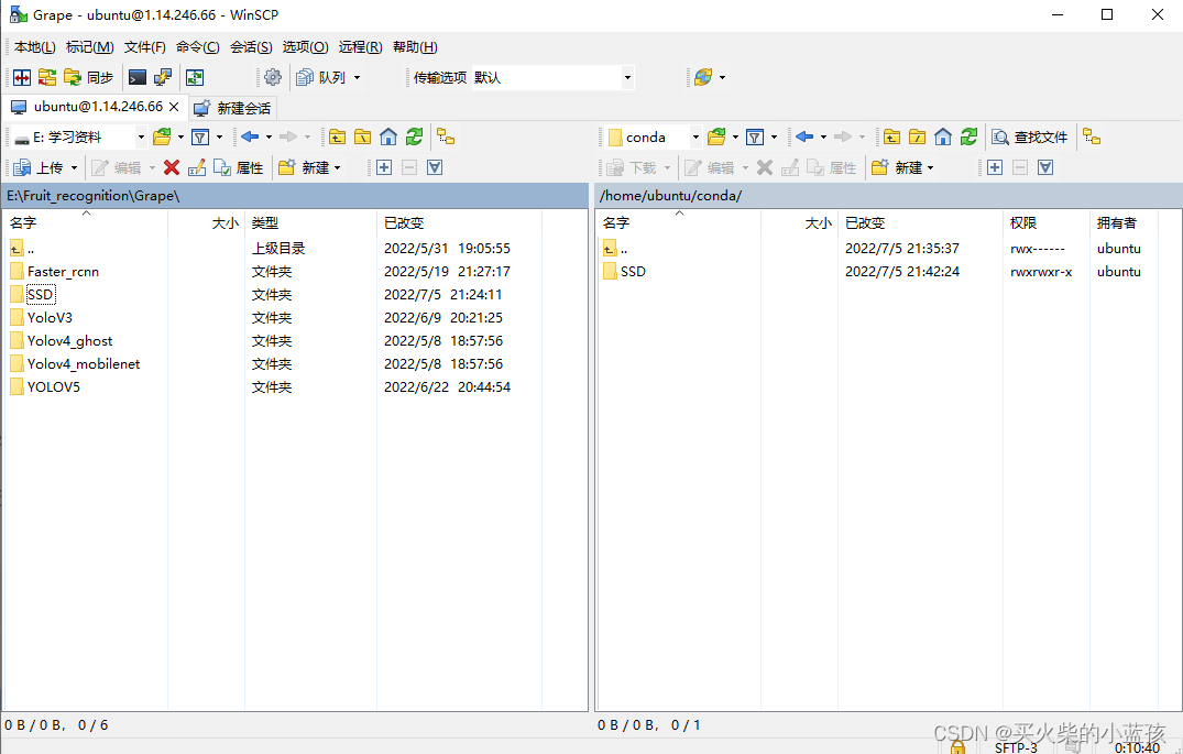5.上传自己的训练文件,如E:\Fruit_recognition\Grape\SSD,右键SSD→上传→后台上传
