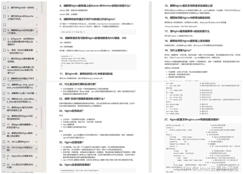 Nginx 是一款轻量级的 Web 服务器、反向代理服务器,由于它的内存占用少,启动极快,高并发能力强,在互联网项目中广泛应用。那么关于 Nginx 的核心面试题有哪些呢?今天给大家整理了40道Nginx 高频面试题,最近有面试的朋友们都来看一下吧!