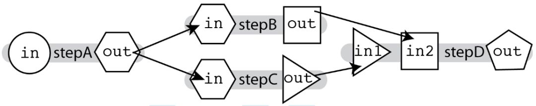 call stepD { input: in1=stepC.out, in2=stepB.out }