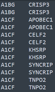 \t分隔的两列,每一行代表具有相互作用的两个基因。