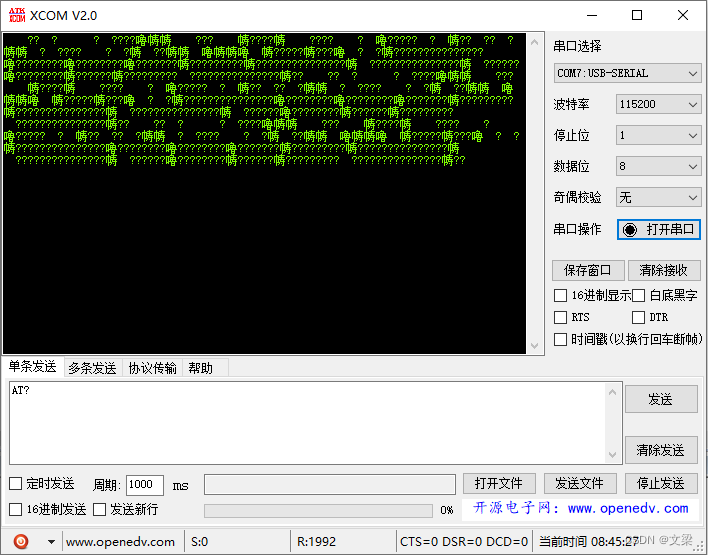野火使用的是25M的晶振,而正点原子使用的是8M的晶振,,时钟源频率不同,导致程序节拍就有差异,频率不匹配,信号不能正确传输和解析,因此会出现乱码问题。