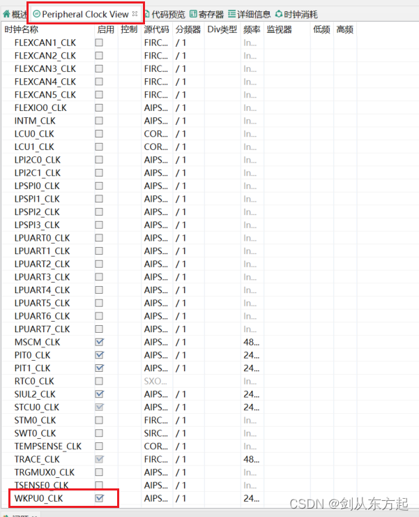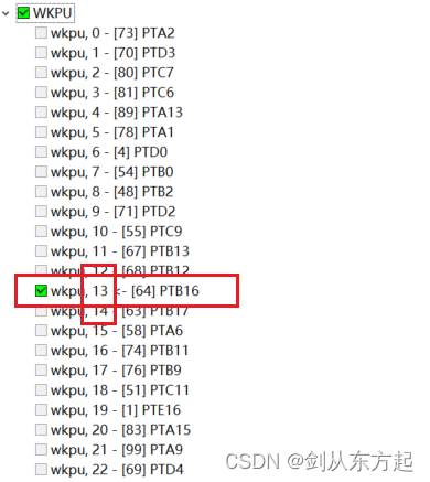 根据自身需要,在进入休眠时候哪些使能,哪些不使能呢?这里是可以自己选择的。但是WKPU是必须使能的。