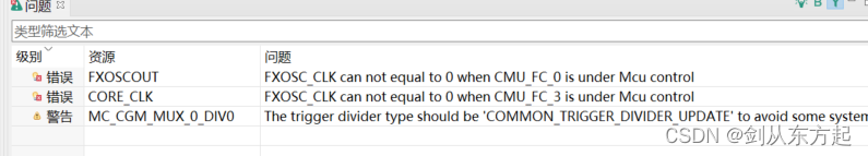注意添加完成之后会报错与警告如下图,因为这些时钟是不使用的,需要关闭。