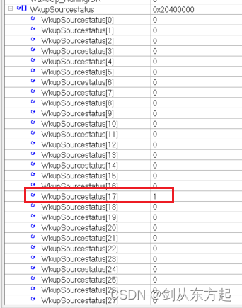 设置唤醒源:注意一下为什么是17呢?刚才前面提到了,前面4个源为内部源,IO这块需要在原本13的基础上加4,这点需要非常注意。