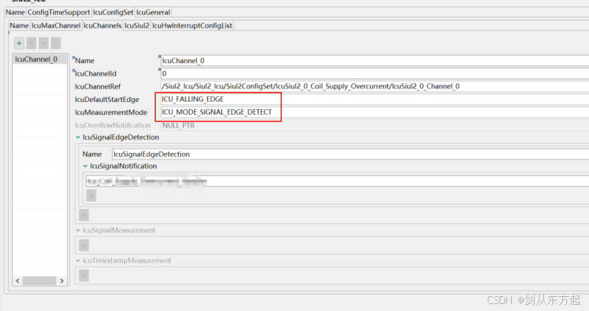 IcuChannels配置如下,此处需要注意的时候,看下什么时候产生中断,例如有的需要在由高电平变低电平的时候产生变化,此时是下降沿。回调函数填入即可。