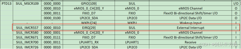 S32K3xx的IO口可以当作外部输入中断使用,项目中有时候需要进行响应的功能匹配,记录一下使用方式。