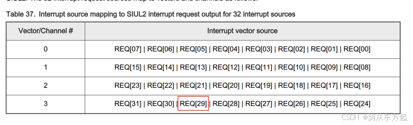 文档支持,注意这里的REQ[29]的向量表是3,后续RTD配置会使用到。