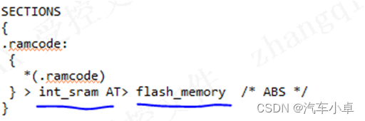 4.在启动代码里做将flash_memory拷贝到int_sram段的动作,如下: