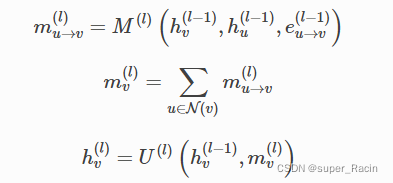 消息传递机制(这是GNN中最重要的一个部分),消息传递满足以下式子。基本上都是两个部分组成:①消息的传递 ②消息的汇聚更新。消息传递是有方向的。