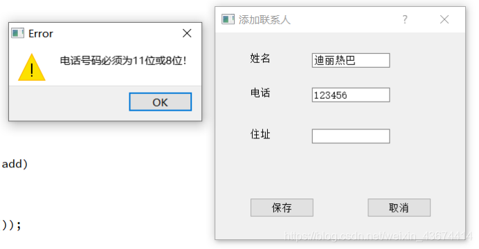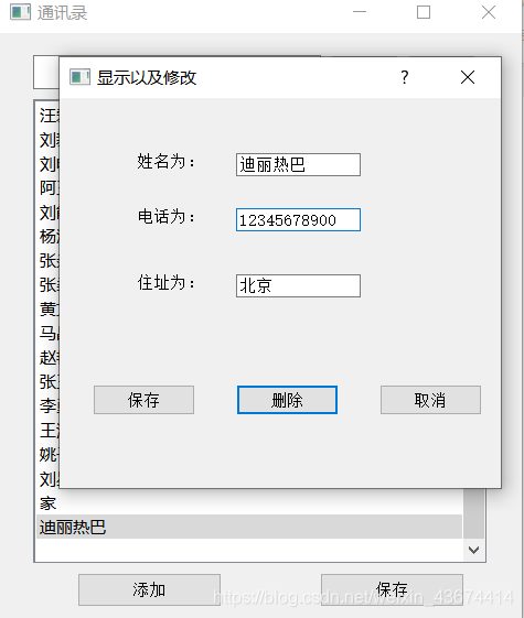 双击联系人弹出显示及修改对话框
