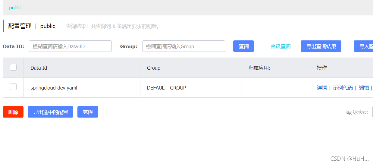 配置好后,我们打开nacos的管理后台,发现之前配置的配置文件都不在了,