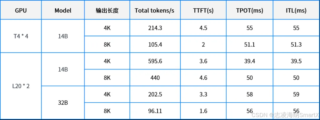 为进一步验证方案效果,我们分别使用 NVIDIA T4 和 L20 GPU 测试了 DeepSeek-R1-Distill-Qwen-14B(BF16)与 DeepSeek-R1-Distill-Qwen-32B(BF16)模型基于 SmartX AI 基础设施的性能表现,并验证了两款模型在 AI 客服场景的回复准确率、token 消耗、回复时间等表现。