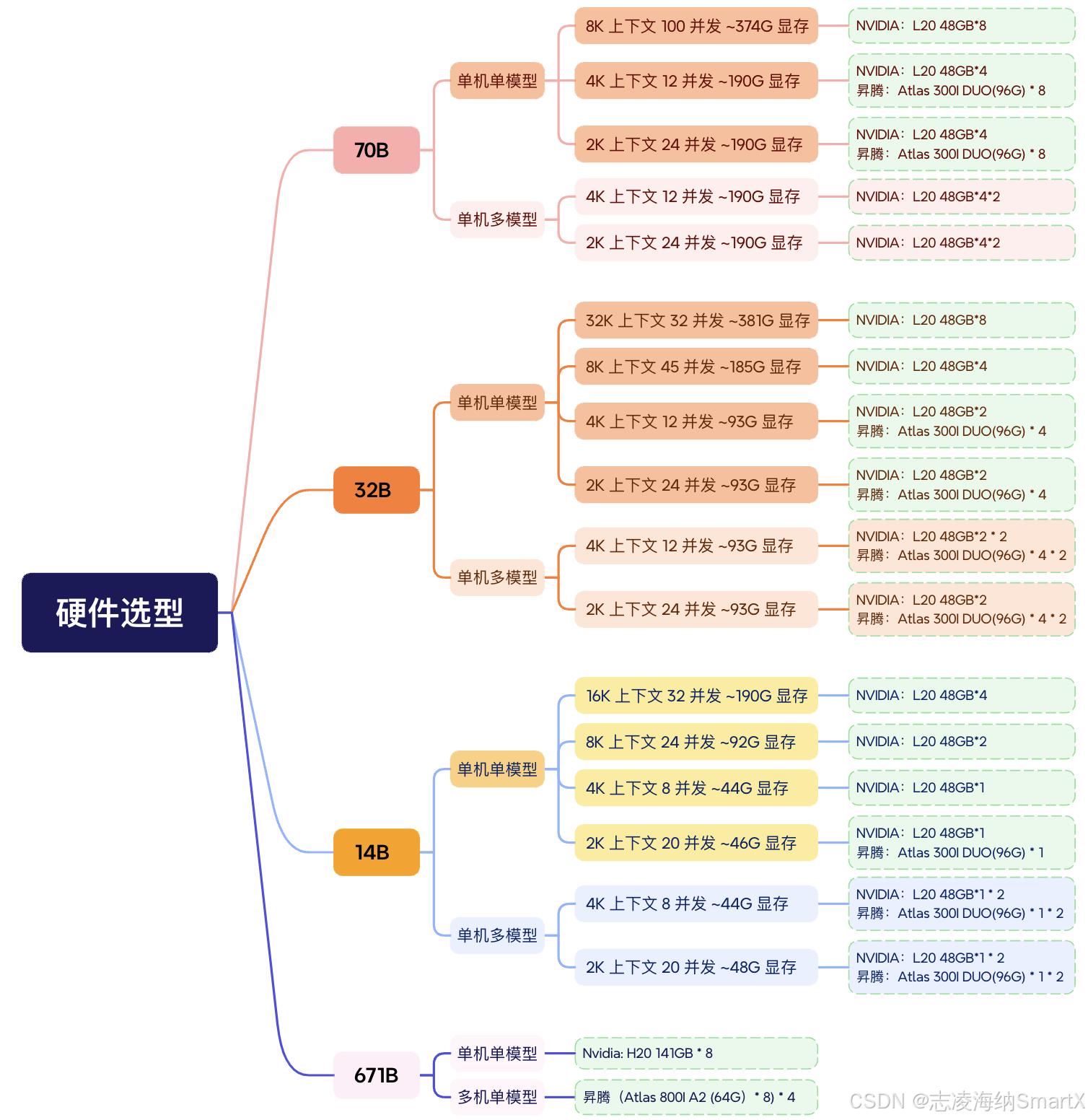 用户可以在根据模型规模进行 GPU 选型后(参考上图),进行软件方案的选型(参考下图):