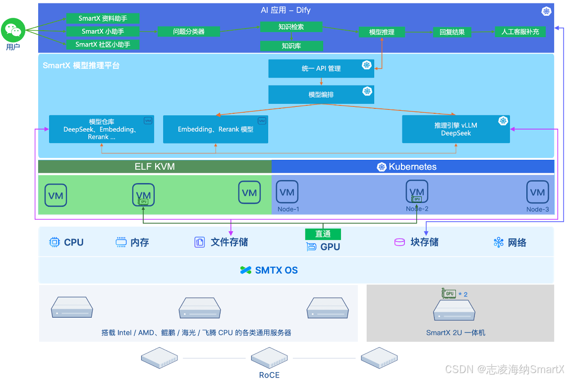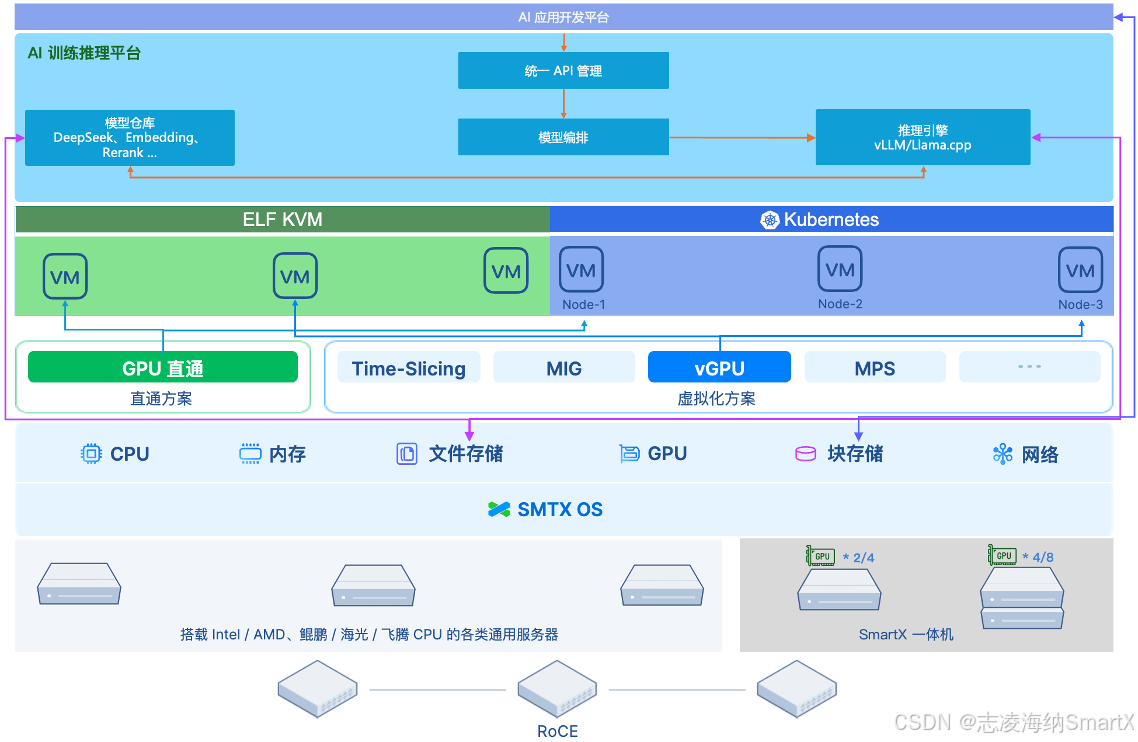 - 拓展场景:基于 SmartX 超融合对 RoCE 和 SR-IOV 的技术支持,用户可探索分布式推理,部署更大规模模型。