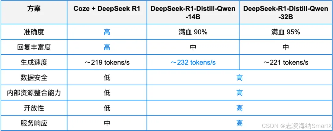 此外,我们还基于该场景,与公有云(Coze)环境部署 DeepSeek R1 满血版的性能和服务效果进行了对比测试。其中,私有化部署配置与方案验证中一致。